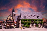 Uitzicht op het stadhuis van Quedlinburg in de Harz