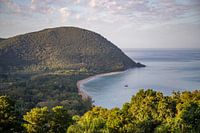 Een afgelegen zandstrand, een afgelegen baai op Basse Terre, Guadeloupe. Fantastisch weer in de Caraïben op de Franse Antillen. Turquoise blauwe zee en palmbomen, wat wil je nog meer?