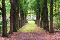 Een eikenlaan vormt een mooi doorkijkje naar het huis Beerze op het gelijknamige landgoed Beerze in de omgeving van de gemeente Ommen, in de provincie Overijssel. Oorspronkelijke bewoners van Adel waren onder andere Baron Bentinck en Jonkheer Roëll. Deze foto is gemaakt in de Nazomer van 2018