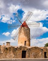 Zicht op traditionele windmolen op Mallorca, Spanje, Mallorca, Balearen, Balearen, Middellandse Zee, Spanje