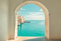Een majestueus portaal opent naar een betoverend tafereel waar zachte golven het glinsterende water kussen. Licht stroomt door de elegante boog en omarmt de helderblauwe tinten van de zee, terwijl de zachte rotsen mysterieus op de achtergrond torenen. Een uitnodiging om het leven van alledag achter je te laten en je onder te dompelen in…