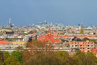 Prachtig uitzicht over Amsterdam met in de verte de Dam (met reuzenrad) en het Centraal station en links de Westerkerk