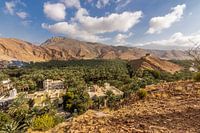 Na een steile klim naar boven een mooi uitzicht over het stadje Nizwa.