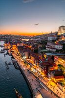 Deze foto vangt het unieke karakter van Porto in de overgang van dag naar nacht, waar geschiedenis en modern leven samenkomen onder een hemel die langzaam donkerder wordt. Het is een uitnodiging om de stad te bewonderen en je mee te laten voeren door de serene schoonheid van deze bijzondere Portugese stad.