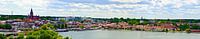 Panorama van de stad Västervik met havengebied van de toren Unos Torn, Zweden.