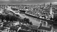 Een avond foto in Zwart-Wit met uitzicht over Verona gezien vanaf Castel San Pietro. Verona is een stad aan de rivier de Adige in de provincie Veneto, Italië.
