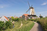 Uitzicht over vestingstad Willemstad in Noord-Brabant met op de voorgrond korenmolen d'Orangemolen