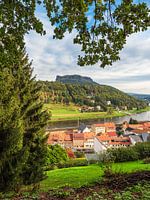 Uitzicht over de Elbe naar Saksisch Zwitserland en de stad Königsstein.