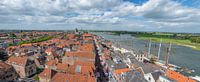 Uitzicht over de Hanzestad Kampen aan de IJssel in de IJsseldelta tijdens een mooie zomerse dag. De foto is gemaakt vanaf de Nieuwe Toren in het centrum van de stad.