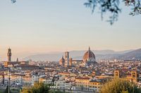 Uitzicht over de stad Florence met de kathedraal en Duomo als icoon. Op de achtergrond de bergen van Toscane. De foto is gemaakt vanaf een heuvels tijdens zonsondergang