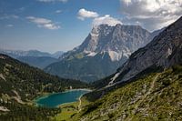 Uitzicht over de Sebensee naar de top van de Zugspitze
