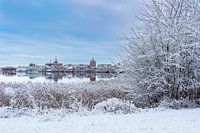 Uitzicht over de Warnow naar de Hanzestad Rostock in de winter van Rico Ködder