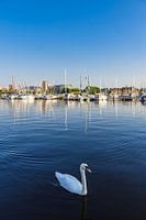 Uitzicht over de rivier de Warnow naar de Hanzestad Rostock.