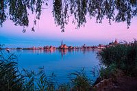 Uitzicht over de rivier de Warnow naar de Hanzestad Rostock.
