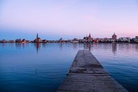 Uitzicht over de rivier de Warnow naar de Hanzestad Rostock.
