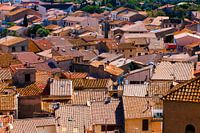 Uitzicht over de daken van het kleine middeleeuwse dorp Gruissan in het zuiden van Frankrijk.