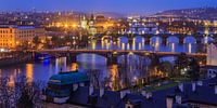 Deze foto met uitzicht op de oude stad van Praag met een aantal bruggen is gemaakt op een avond in oktober 2017.