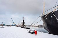 Uitzicht over de stadshaven in de Hanzestad Rostock in de winter.