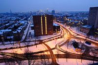 Op de voorgrond de Kardinaal de Jongweg en het Salvador Allendeplein. De straten aan weerszijden van de flat zijn de Troelstralaan (links) en de Talmalaan.