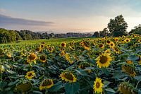 Uitzicht over een veld met zonnebloemen in Frankrijk, in de buurt van Saint-Jean-Pied-de-Port.