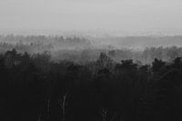 Een mistige ochtend, kijkend over het Eerderbos bij Ommen. De prachtige bomenrijen zorgen voor mooie diepte in de foto.