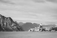 Dit prachtige uitzicht had ik tijdens mijn vakantie aan het Italiaanse Gardameer. Het stadje op de foto heet Malcesine en ligt op een schitterende plek langs het meer, omringd door bergen. Het is een middeleeuwse stad met smalle straatjes en een indrukwekkend kasteel dat boven alles uittorent. De sfeer in Malcesine is kleurrijk en levendig, maar ik heb ervoor gekozen om deze foto zwart-wit te maken. Zo lijkt het net een oude ansichtkaart, want precies dat gevoel kreeg ik toen ik daar was.