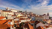 Lissabon is de hoofdstad van Portugal en op deze zonnige foto zien we vanaf het bekende uitkijkpunt Miradouro Portas do Sol, het centrale Alfama district, de oude Moorse wijk van de stad.