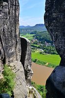 Uitzicht vanaf de Bastei naar de Elbe en Kasteel Königstein