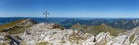 Boven de pieken rust de dag in stille helderheid. De hemel strekt zich eindeloos uit, een diep blauw dat uitgestrektheid ademt. Vanaf de Grote Duim kijkt de wandelaar omlaag in het Illertal, waar de valleien zich openen als de bladzijden van een oud boek - geschreven in groen, licht en verte. Het kruis op de top, eenvoudig en rechtop, waakt over de tijd, tegelijkertijd verankerd in steen en lucht.