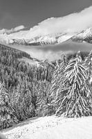 Uitzicht vanaf de Klausberg in het besneeuwde Ahrntal, Zuid-Tirol, Italië