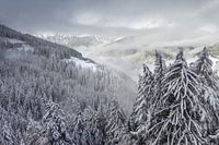 Uitzicht vanaf de Klausberg in het besneeuwde Ahrntal, Zuid-Tirol, Italië