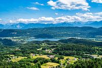Uitzicht vanaf de Pyramidenkogel-observatietoren op de Woerthersee in Oostenrijk