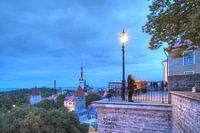 Uitzicht vanaf de kathedraalheuvel op de benedenstad, de oude stad met de Olai-kerk of Oleviste Kiri van Torsten Krüger