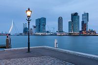 Uitzicht vanaf de veerhaven over rotterdam tijdens het blauwe uurtje
