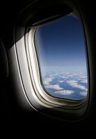 Uitzicht vanuit een vliegtuigraam tijdens de vlucht