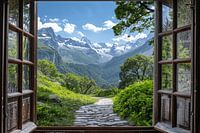 Geniet van het spectaculaire uitzicht op de majestueuze Alpen door een open raam. Deze prachtige landschapsposter brengt de schoonheid van de natuur in je woonkamer en creëert een rustige en ontspannen sfeer. Ideaal voor natuurliefhebbers en mensen die een gevoel van ruimte en vrijheid in hun huis willen. De levendige kleuren en gedetailleerde illustratie maken het een perfect decoratiestuk.