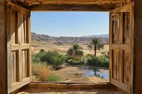 Dompel jezelf onder in de vredige schoonheid van een oase, vastgelegd door het uitzicht vanuit een open raam. Deze prachtige poster brengt de rustige en ontspannen sfeer van de woestijn in je woonkamer. Ideaal voor natuurliefhebbers en reislustigen die een vleugje exotiek en ontspanning in hun kamer willen brengen. De levendige kleuren en gedetailleerde illustratie maken het een perfect decoratiestuk.