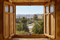 Dompel jezelf onder in de vredige schoonheid van een oase, vastgelegd door het uitzicht vanuit een open raam. Deze prachtige poster brengt de rustige en ontspannen sfeer van de woestijn in je woonkamer. Ideaal voor natuurliefhebbers en reislustigen die een vleugje exotiek en ontspanning in hun kamer willen brengen. De levendige kleuren en gedetailleerde illustratie maken het een perfect decoratiestuk.
