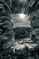 Tijdens de wandeling naar het topkruis van de Hochobir in Karinthië kom je langs een oude, vervallen berghut. Dit is het uitzicht vanuit het raam de natuur in.