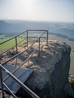 Vanaf het uitkijkpunt aan het westelijke uiteinde van de Lilienstein heb je een wijds uitzicht - het panorama strekt zich uit van de vesting Königstein tot aan het Basteigebied. Het uitzicht kan worden bereikt vanaf de splitsing van de zuidelijke beklimming/afdaling.