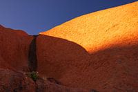 Detail van Uluru (Ayers Rock) bij zonsopkomst, met polarisatiefilter gefotografeerd voor een extra blauwe lucht.
