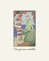 Een historische mode prent in een modern jasje: “faux”. Geïnspireerd door de Art Deco, een stijlbeweging die opkwam in de jaren twintig van de vorige eeuw. Nieuw zakelijkheid gemengd met moderne strakke lijnen en kleuren.