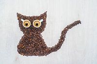 Uniek Kunstwerk van Koffiekat - Espresso Ogen en Koffiebonen Lichaam van Elianne van Turennout