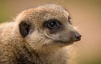 Uniek portret van een nieuwsgierig Stokstaartje. van Wildlife Designs