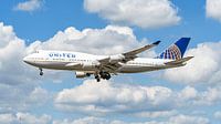 Een Boeing 747-400 van United Airlines, de N116UA, in de landing gefotografeerd bij de luchthaven van Frankfurt am Main.