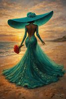 In de zon gevangen zweeft ze tussen licht en schaduw. Haar hoed is een horizon die geheimen verbergt, haar jurk een fluistering van tijdloze vrouwelijke luxe. Ze draagt haar mysterie met zachte kracht als een stille filmster in een moderne droom. Haar hoed kust de lucht, terwijl haar silhouet een ode brengt aan ongetemde elegantie. Ze…