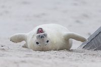 Up Side Down baby Pasgeboren zeehondje bekijkt de wereld op zijn kop