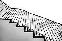 Up-stairs is een werk waar trappen het lijnenspel maken. deze moderne trapopgang past in elk interieur of in elk kantorencomplex . De harde lijnen en het hey-key effect maken dit tot een stuk moderne kunst voor op de muur. uitgevoerd op acryl komt dit het best tot haar recht.