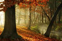 De kleuren van de herfst laten zich prachtig zien in de vroege morgen in dit Nederlandse bos