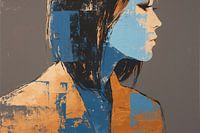 Details: vrouw, schilderij, abstract, industrieel, profiel, blauw, oranje, zwart, grijs, kunst